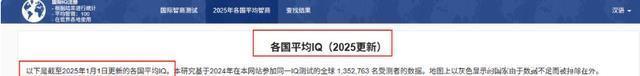肉松小贝 编辑 |沐语纪史 想象一下,如果国家也有“智商排行榜”,那么2025年的结果绝对让你大跌眼镜! 在这个信息爆炸的时代,国家之间的竞争早已不局限于经济和军事,一个新的指标 “国民的智力水平” 正在成为大家关注的点。